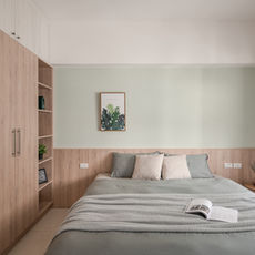 材質|木皮、人造石、系統櫃、洞洞板、鐵件和超耐磨木地板